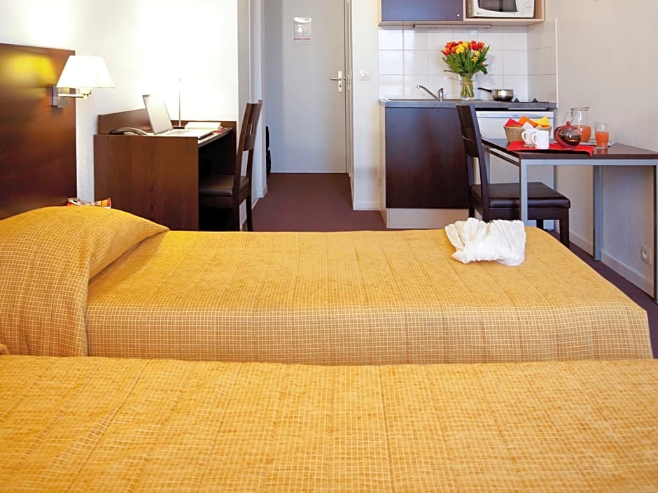 Inviting studio with a double bed and two twin beds, perfect for 2 adults and 1 child. Enjoy the convenience of a kitchenette, free toiletries, and a modern private bathroom.